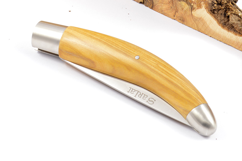 Le manche est en Olivier, arbre fruitier du bassin méditerranéen, très apprécié pour ses veines dorées.